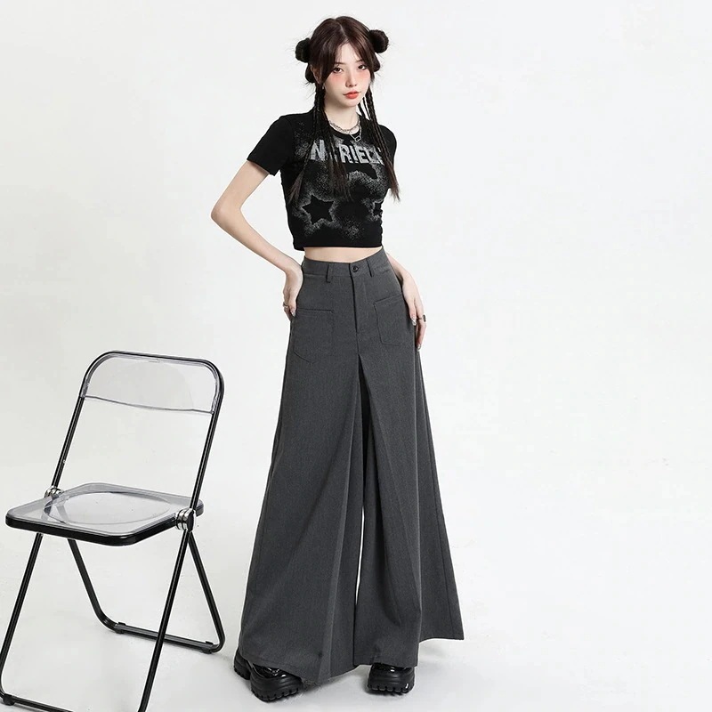 【送料無料】カジュアル ワイドパンツ デザイン感 ゆったり 薄手 ロングパンツ ストレート ハイウェスト パンツ ラックスパンツ 美脚動きやすい ジョガーパンツ