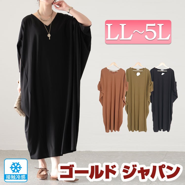 大きいサイズ レディース ワンピース 接触冷感Vネックマキシワンピース ワンピ 半袖ワンピース ロング 半袖 Vネック ドルマン コクーン 接触冷感 冷感 涼しい ドレープ 無地 ストレッチ 春新作