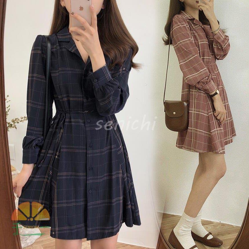 シャツワンピースレディース40ワンピース秋きれいめ膝丈ワンピース長袖チェック柄ワンピースAライン着痩せ通勤結婚式お出かけ大人3050長袖ミニ・膝丈ワンピ
