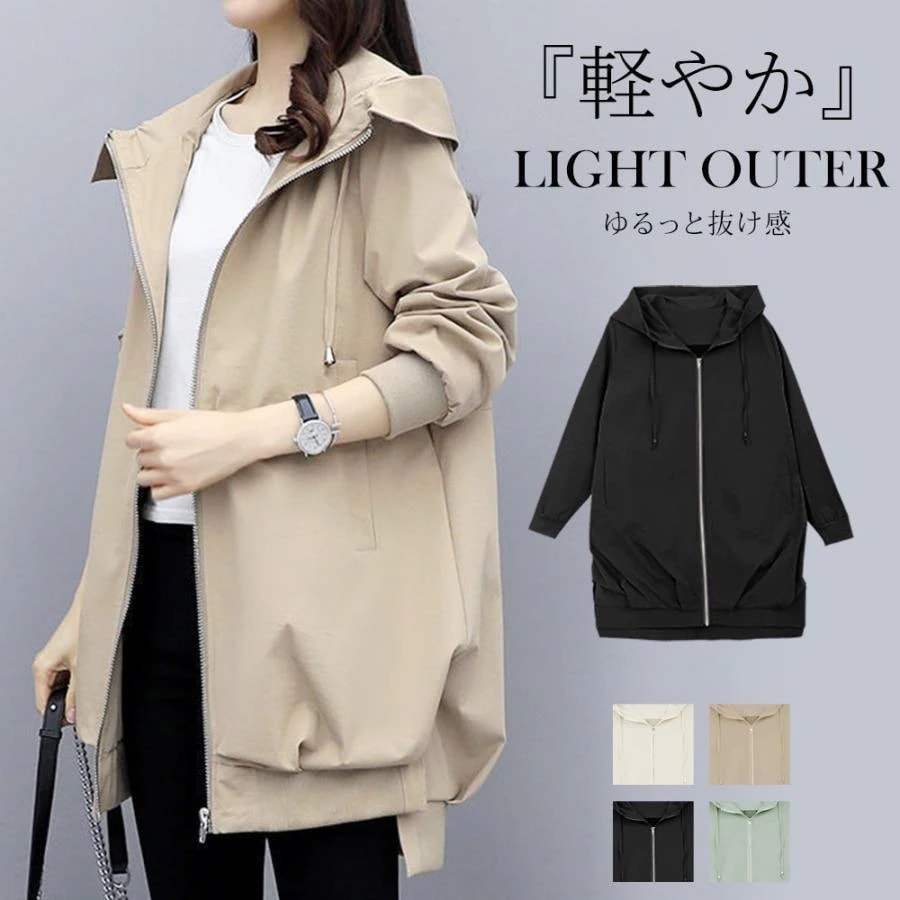 撥水加工 マウンテンパーカー アウター UV加工 ブルゾン レディース 長め丈 裏地あり フード付き 軽量 通気 春 秋 アウター パーカー ブルゾンその他 アウター