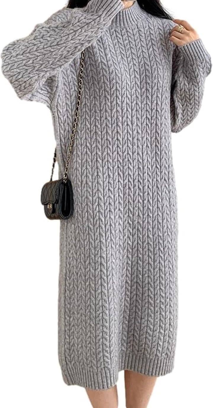 2023秋冬 ハイウエスト ドッキング ワンピース ニットワンピース 大きいサイズ 体型カバー 長袖 ロングワンピース