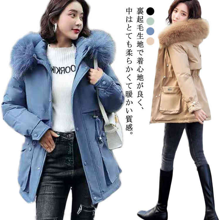 ダウンコート 中綿コート レディース 冬服 暖かい コート 厚手 裏ボア 防風 ダウンジャケット フード付き カジュアル 寒さ対策 通勤 通学