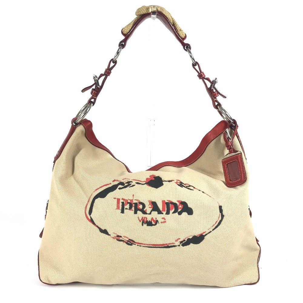 ショルダーバッグ ロゴ カバン 肩掛け ロープ キャンバス トートバッグ ホーボーバッグ レザー/キャンバス レッドショルダーバッグ